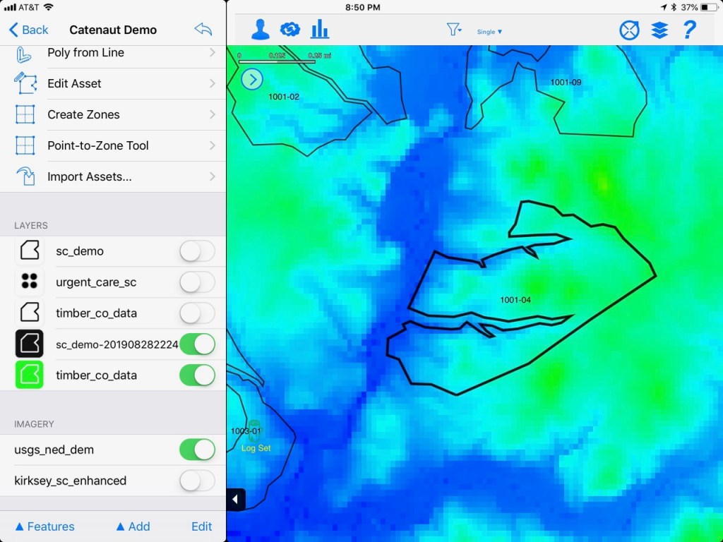 All of the app’s functionality is available with a single user license, but is further enhanced through synchronized sharing between multiple users. Users do not have to be within a single organization. The app is configurable with one or more databases, where access can be granted by user type. This would be useful in a fully-integrated scenario where the forester, logger, and procurement personnel are all working with different views of the same information.