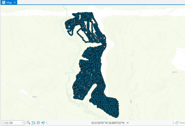 After obtaining the output, the next step is to create a point feature layer in ArcGIS. ArcGIS Pro has a tool in the Data Management Toolbox called “XY Table To Point”. Users can run this tool interactively (within ArcGIS Pro) or using Python code in a code window. This tool will create a point feature class (.shp) with one feature for each record in the CSV output table. The resulting feature class will contain every point recorded by the device that was included in the CSV file. This information can be used further to develop summary reports or maps of work progress.