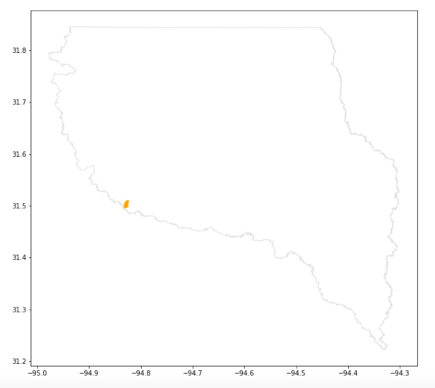The resulting GeoDataFrame object had forty-four attributes (i.e.; columns), most of which were unnecessary for this analysis. Only five attribute columns were retained, these included: