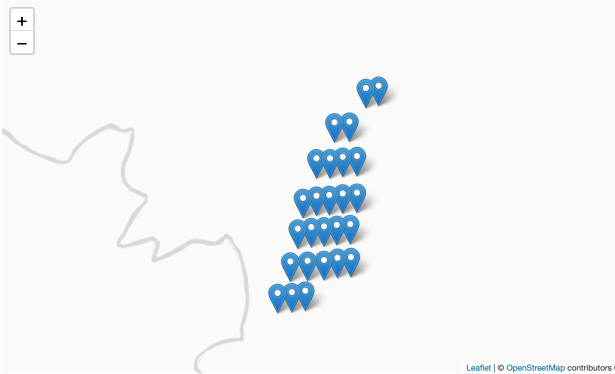As indicated above, the Folium package was used to create maps to help visualize the plot locations. The following code was used to create a basic plot map using blue markers.